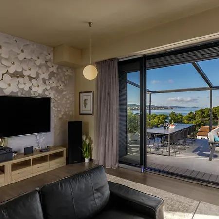 Η Villa Bella By Tourist Adria Group Mrljane διαθέτει βεράντα με θέα στη θάλασσα, καθώς και έχει ιδιωτική πισίνα.